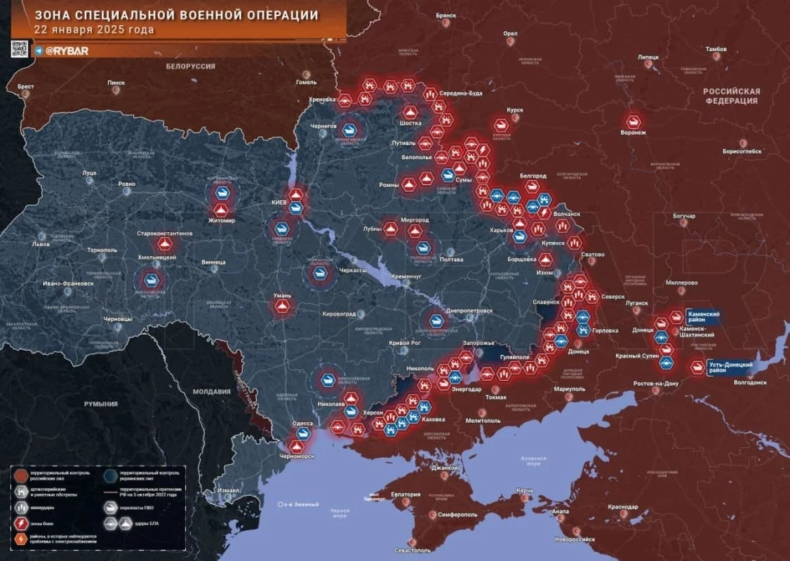 Новая карта боевых действий в зоне СВО на Украине на 23.01.2025