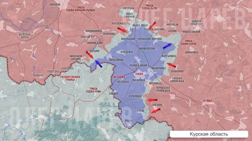 Тяжёлые бои идут на рубеже Никольский - Кругленькое. С мест сообщают, что ночью командование ВСУ перебросило в Суджанский район свыше 100 десантников, которых сразу же отправили в контратаку на наши позиции в районе хутора Никольский. Наши встретили их огнем, атаку отбили.