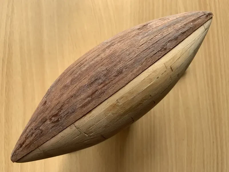 Теперь пластилиновый корпус в три слоя покрывается кусочками размоченной в воде газетной бумагой: первый слой только на воде, вторые два на клею ПВА. Хорошо просушив бумажную «скорлупу» и обрезав свисающие с корпуса края, оклеиваем ее палочками-мешалочками для кофе, стараясь по возможности укладывать их как можно плотнее. Клей – ПВА.