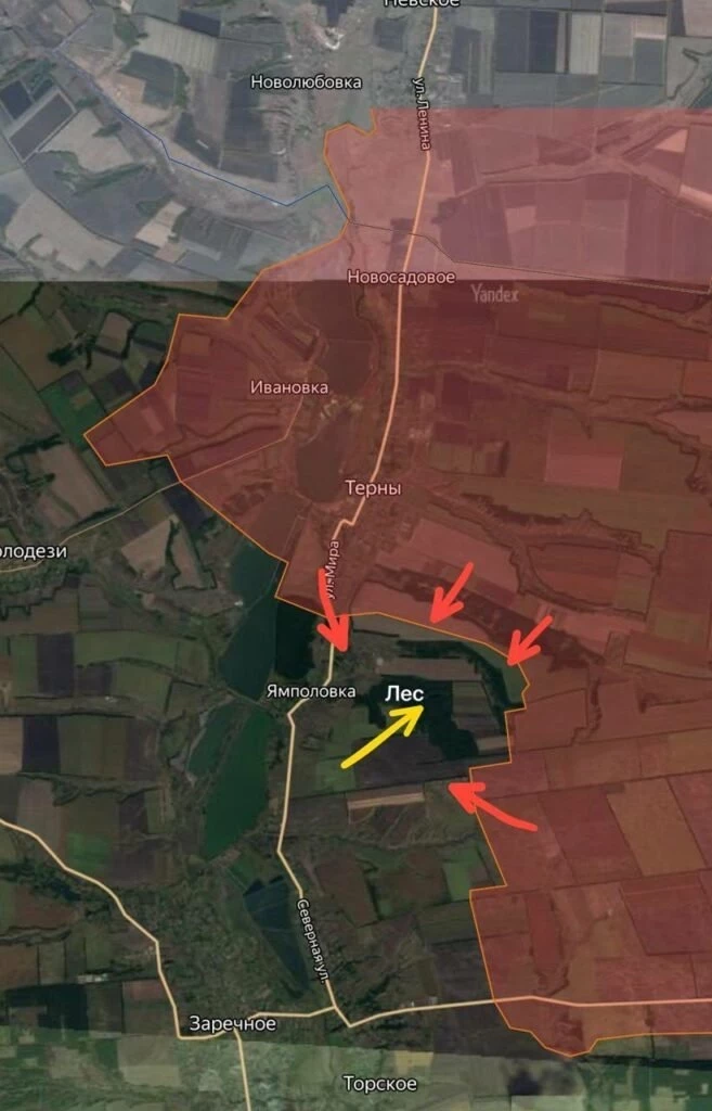 «В ходе активных боевых действий наши войска прорвали оборонительную линию вооруженных формирований Украины южнее Тернов, на 1,2 км продвинувшись в глубину обороны противника, и вошли в населенный пункт Ямполовка», - поделился подробностями происходящего Марочко.