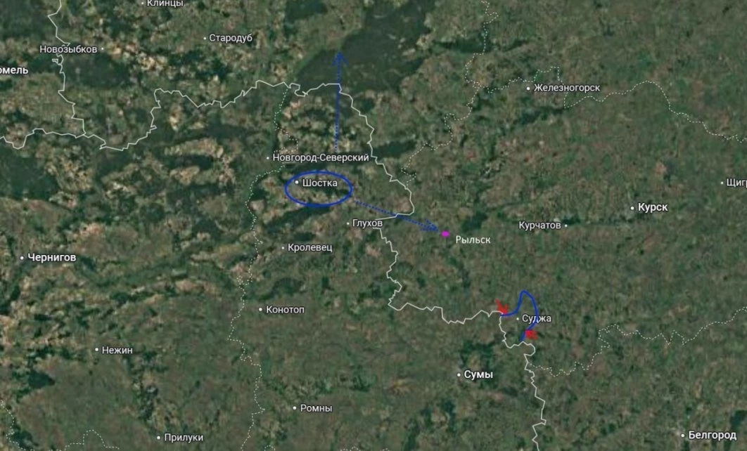 ВС России продвигаются в Сумской области к трассе снабжения ВСУ в Судже и пытаются взять в окружение находящихся на территории России войска противника.