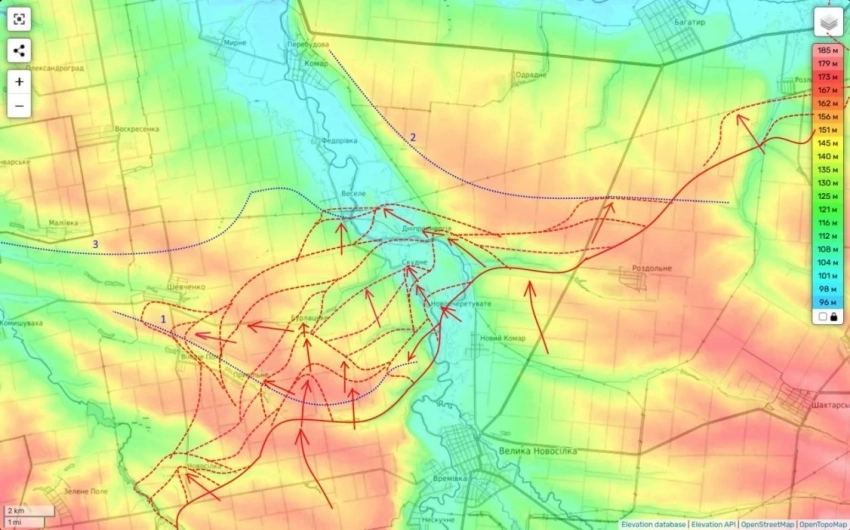 Что и было произведено южнее Веселого. Сейчас бои идут уже за само село. А еще наши части сумели немного продвинуться по опорникам ВСУ между Шевченко и Волным Полем. Заставив тем самым противника уйти минимум из южной части села (а может и полностью). Теперь это серая зона.