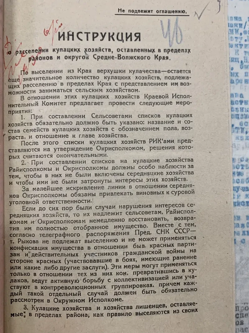 Не сразу, но обеспечения раскулачивания и выселения кулаков были подготовлены специальные инструкции