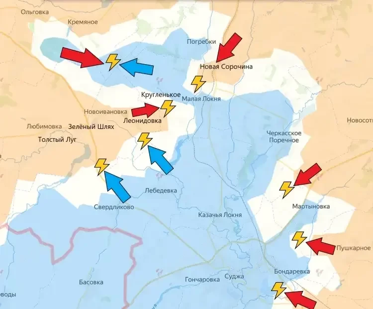 Российские силы продолжают продвижение с юго-восточного направления в сторону города Суджа. Кроме того, в районе Казачьей Локни был уничтожен склад боеприпасов противника, что существенно ослабило его боевые возможности на этом участке.