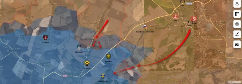 Фиксируются бои в балке Горишний Яр, а также северной части н.п. Локня. Штур данного населённого пункта, а также расположенных в 3 км западнее и восточнее высот необходим для дальнейшего прорыва в Юнаковку, являющуюся крупным прифронтовым узлом снабжения ВСУ.