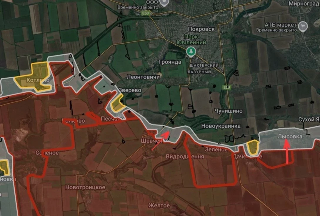 На южном участке Покровского фронта Богдановка близка к освобождению, наши атакуют по балкам южнее села. Ожесточённые бои продолжаются в районе Котляровки. Наши штурмовики потеснили ВСУ западнее Троицкого и прорываются в направлении Орехово. На западном охвате Покровска ВС РФ вернули все позиции, утраченные в последние недели. С западной окраины Солёного ВСУ тоже выбиты, и ВС РФ атакуют в направлении Новосергеевки, восстанавливая и тут ранее занимаемые рубежи и обеспечивая фланг в районе Успеновки и Новоалександровки. Идут атаки наших в районе сёл Удачное и Котлино, в Зверево и северо-восточнее Песчаного. Шевченко за нашими, несмотря на все попытки ВСУ заскочить в село. На восточном охвате Покровска тяжёлые бои за Тарасовку и в районе Зеленого Поля.
