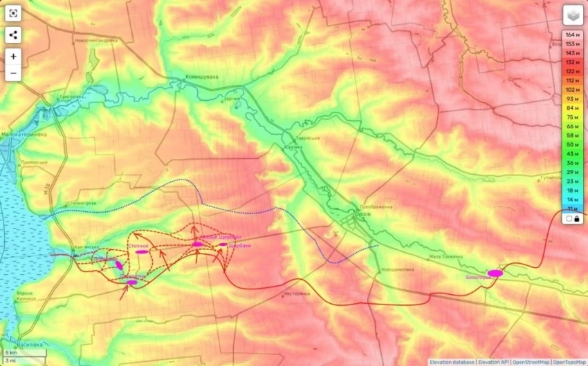 На Запорожском направлении российские части продолжают бои в Каменском и пытаются продолжать наступать севернее Малых Щербаков.