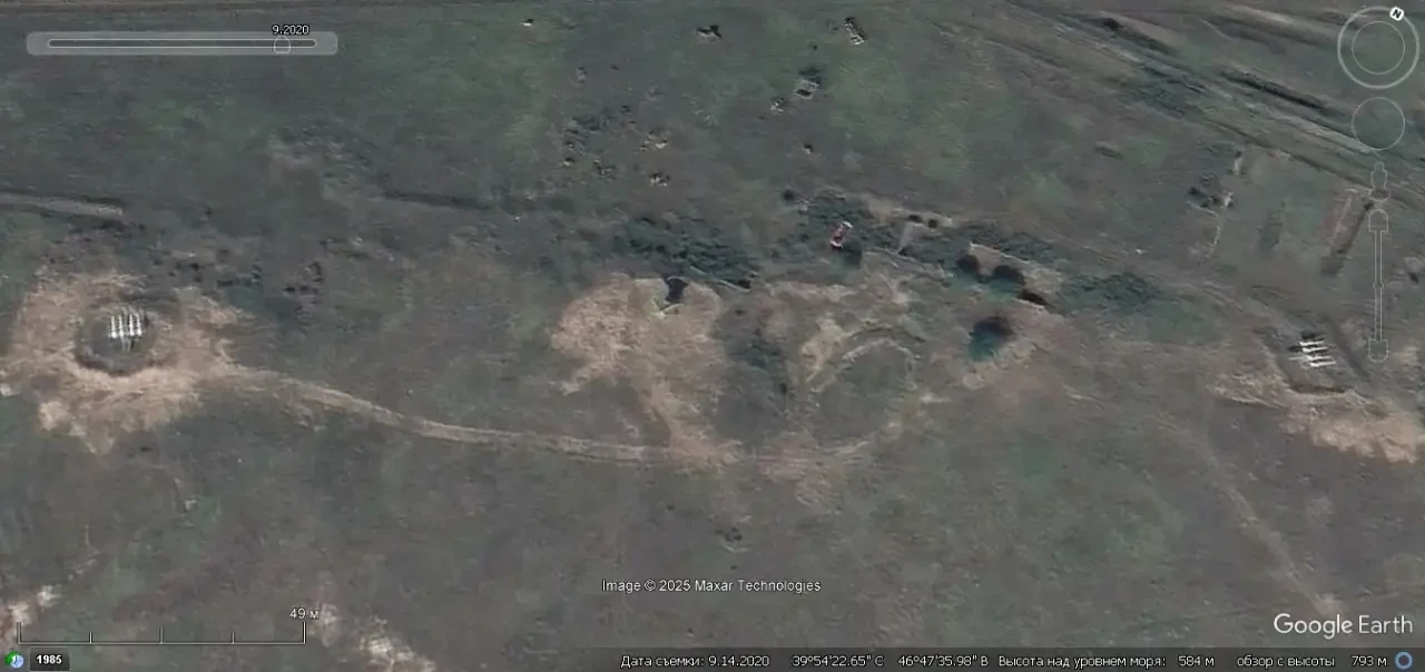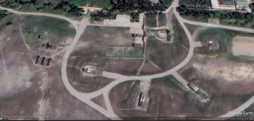 Спутниковый снимок Google Earth: позиция ЗРК С-125М1 в Бейлаганском районе Азербайджана, снимок сделан в марте 2025 года