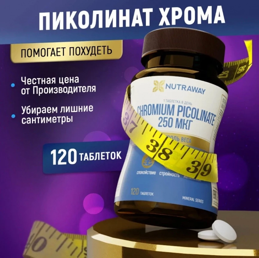 CHROME PICOLINATE от NUTRAWAY — лаконичный, но мощный инструмент из топ БАДов для похудения. Он не вмешивается грубо, а мягко настраивает метаболизм, стабилизируя уровень сахара в крови и снижая зверский голод к сладкому и булкам. Это делает его особенно полезным для тех, кто стремится перейти на правильное питание, не страдая от срывов. 120 таблеток в упаковке — хватит надолго, чтобы встроить в привычку и не забывать, зачем всё это началось.