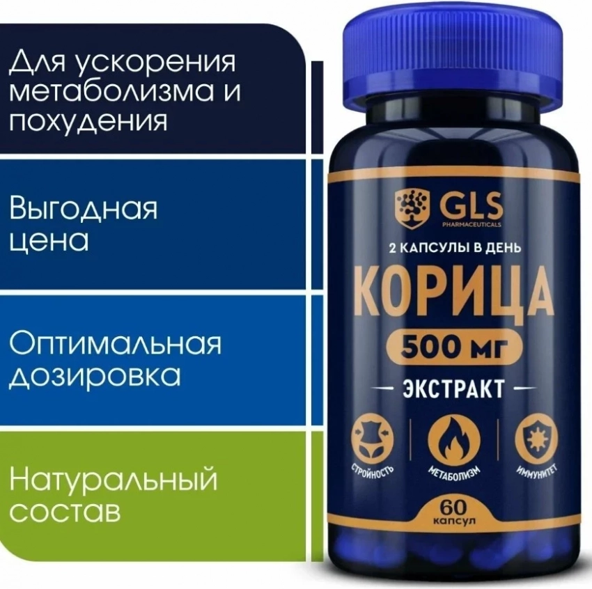 Экстракт корицы от GLS pharmaceuticals — это не просто пряность в капсуле, а серьёзный претендент в топ бадов для похудения. Он помогает контролировать уровень сахара в крови, улучшает обмен веществ, снижает аппетит и одновременно поддерживает здоровье поджелудочной железы. Вдобавок — противовоспалительный и антимикробный эффект, защита сердца, сосудов и даже мозга от возрастных изменений. Отличное решение для тех, кто хочет сбросить вес и прокачать здоровье без лишней химии.