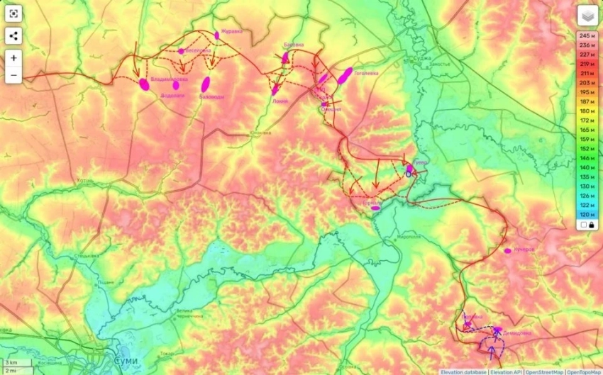 "Сейчас идёт зачистка от противника села Горналь, Наши войска, по данным на вчерашний вечер, уже зашли в центр села, надеюсь, что со дня на день противник будет окончательно выбит. А потом мы продолжим создавать буферную зону на территории Сумской области Украины, чтобы минимизировать атаки ВСУ на Курско-Белгородское приграничье", - поведал блогер.