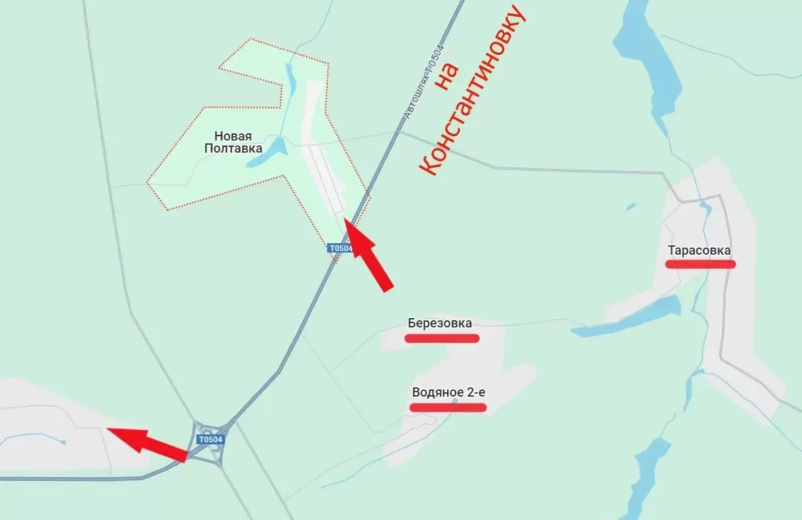 При этом сам выход к Новой Полтавке наших войск свидетельствует о том, что расширился участок контроля указанной выше автодороги Т0504, а значит, оперативно перебрасывать силы между Покровском и Константиновкой (по кратчайшему маршруту) у ВСУ возможности уже нет.