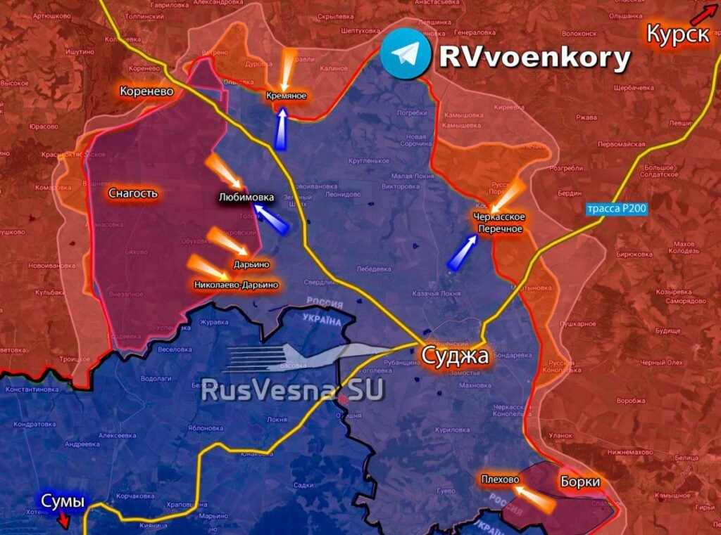 Армия Россия продолжает контратаки для вытеснения противника в районах н.п. Дарьино, Николаево-Дарьино и Плехово, выбивая оккупантов.