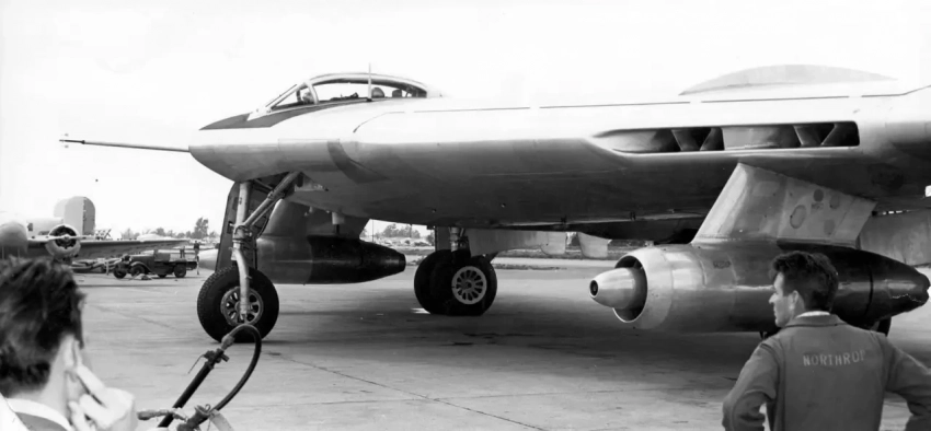Миниатюрный Northrop X-4. Разработанный для изучения поведения околозвукового воздушного потока, он обнаружил, что конструкция без хвоста не подходит для сверхзвуковых или высоких околозвуковых скоростей. X-4 обеспечивал хороший обзор из кабины и был одним из первых самолетов серии X, оснащенных катапультируемым креслом.