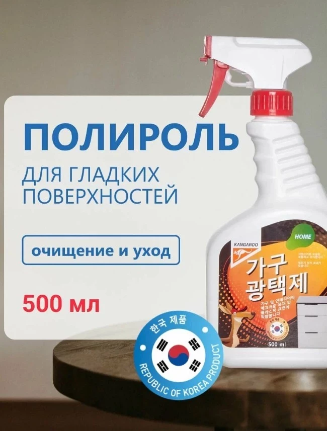 Корейский полироль бытовой для мебели и гладких поверхностей Kangaroo Home 500 мл, спрей с воском и эффектом антипыль