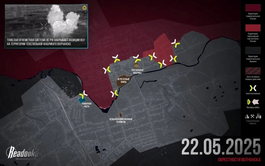 На Харьковском направлении ВС РФ взяли под контроль значительную территорию в восточной части Волчанска, наступают в районе Волчанских Хуторов.