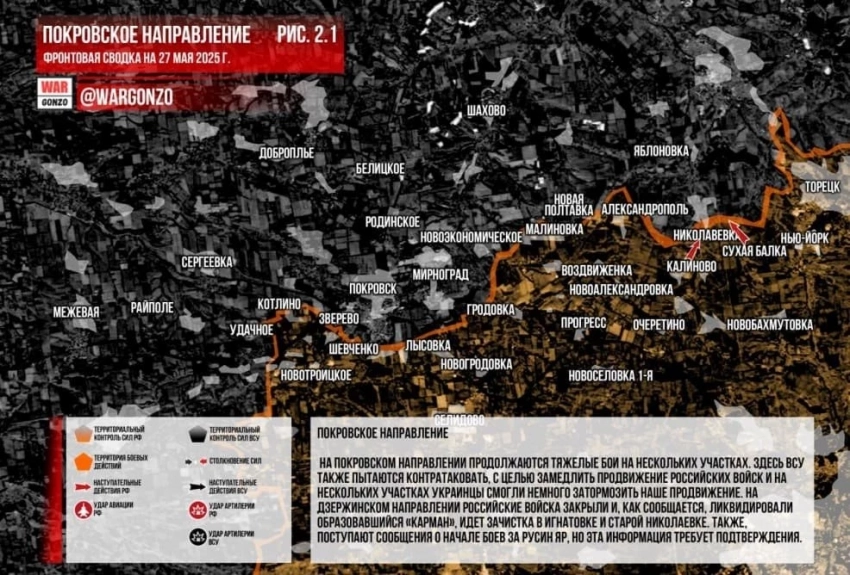 Главные новости » Эксклюзив » ВС РФ ведут ожесточённые бои на нескольких участках на Покровском направлении: свежие данные на 27.05.2025