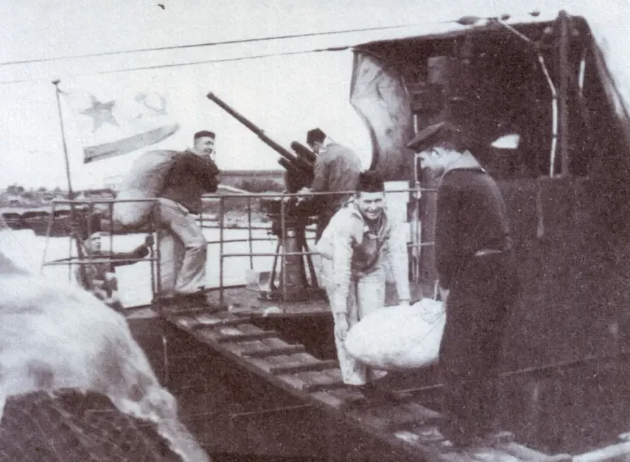 Погрузка продуктов на лодку. Балтийский флот, ор. 1942 год.