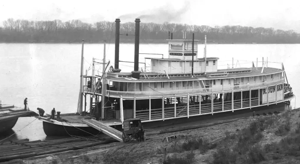 Итак, корпус. Он плоскодонный, с заметной погибелью палубы. Нижняя верхняя палуба обычно шире самого корпуса, по крайней мере, в его носовой части, хотя и не у всех пароходов такое наблюдалось. Высота борта и осадка совсем небольшая, так что плавать такие пароходы могли буквально «по росе». Получается, что изготовление такого корпуса особого мастерства не требовало. Материал использовался самый разный – и дерево, и металл (на более поздних пароходах). По сути дела, корпус «парохода Тома Сойера» представлял собой самый настоящий… понтон, на который устанавливались и все надстройки, и всё его оборудование.
