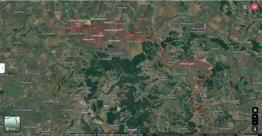 По его мнению, есть предпосылки, что и сегодняшний день будет не менее успешным - российские войска продвигаются в сторону важного населенного пункта Хотень, который расположен в 12 км от северной окраины Сум.