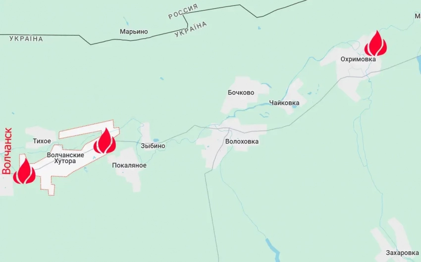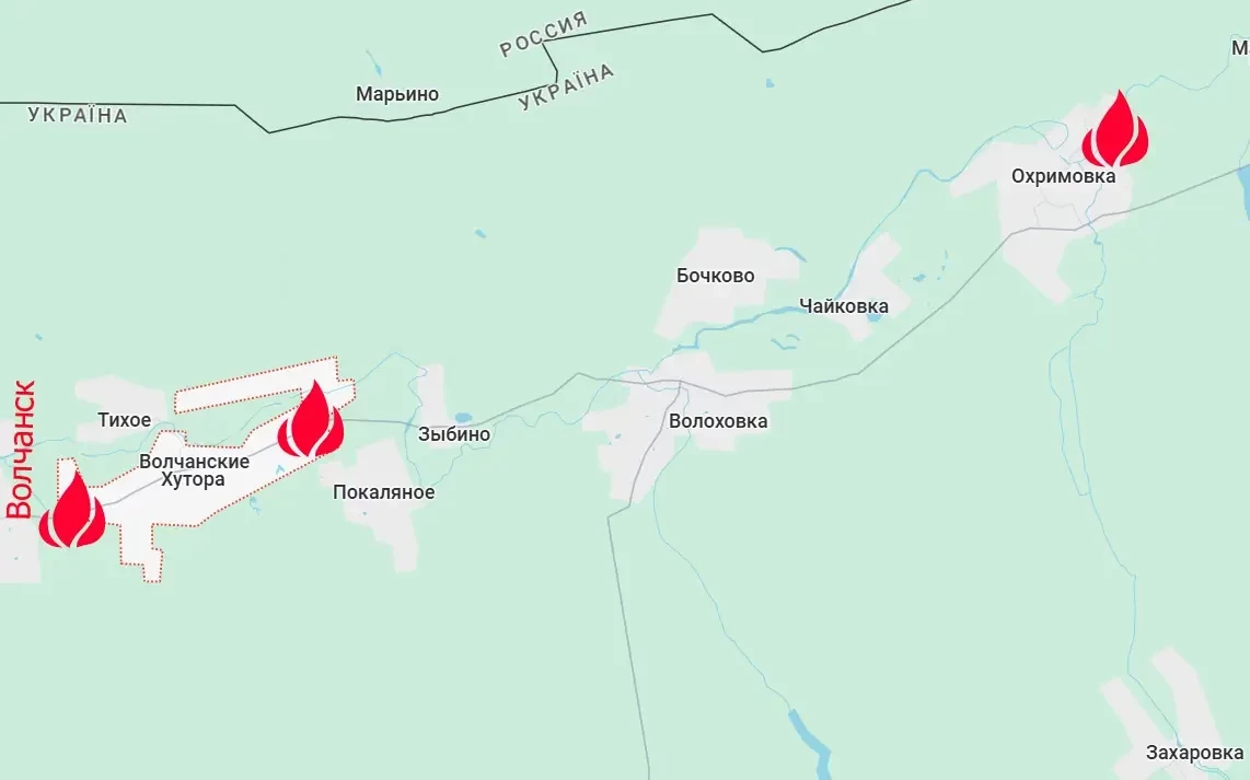 Одновременно с этим серия ударов пришлась по позициям ВСУ в Волчанских Хуторах. Это восточный пригород Волчанска Харьковской области.