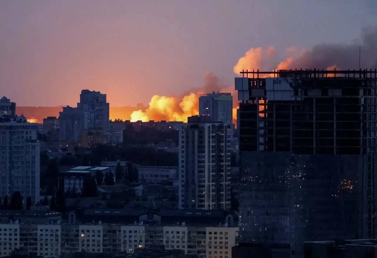 В Киеве продолжаются пожары на ряде промышленных и военных объектов. Наибольший уровень сложного пожара фиксируется в районе Борисполя, где комбинированным ударом была поражена крупная нефтебаза.