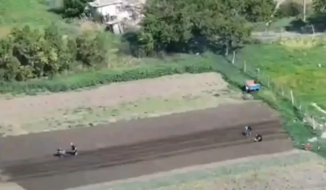 Кадры с дрона: жители недавно освобождённого села Алексеевка в ДНР возделывают поля в нескольких сотнях метров от линии фронта