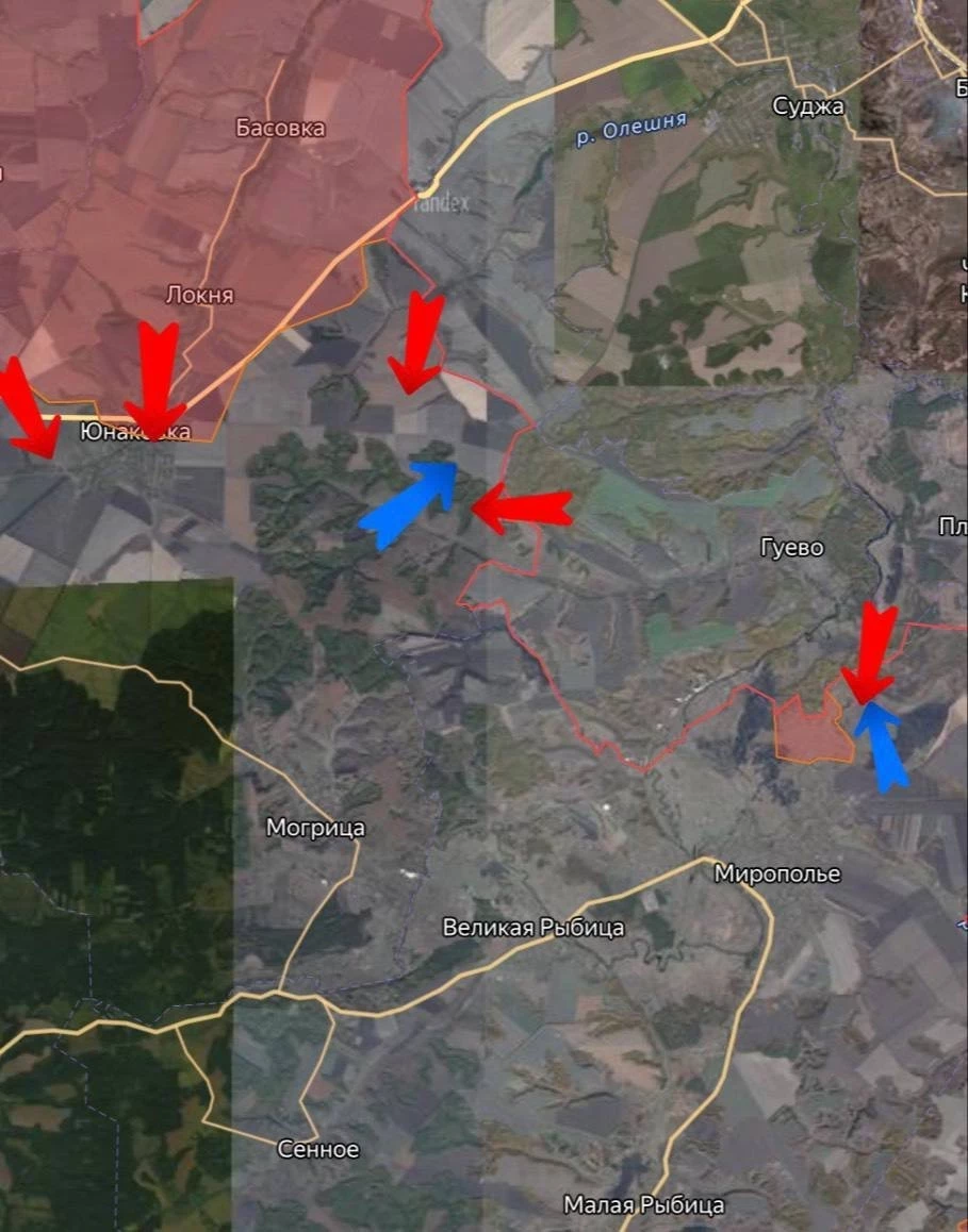 На Сумском направлении наши бойцы продолжают бить врага в Юнаковке. Продвинулись в направлении центра села, а также берут под контроль западную часть снабжающей дороги со стороны Яблоновки. В районе Садков идёт выбивание врага из лесных массивов, которые под контролем противника. Ситуация осложняется большим количеством укрепленных укрытий, сообщает Telegram-канал «Дневник Десантника». В районе Александрии также идёт борьба по выбиванию врага из села, наши войска пока продвинулись на границе и зачистили лесную зону.