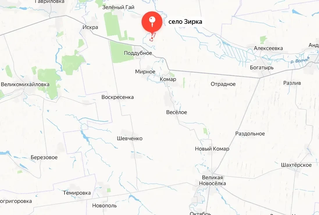 Село Червоная Зирка Великоновоселковского района расположено недалеко от Днепропетровщины. Согласно данным на 2001 год, его население составляло 154 человека. В 2016 году киевские власти переименовали село, убрав из названия слово «Червоная» (по-русски «Червоная Зирка» означает «Красная Звезда»).