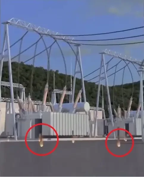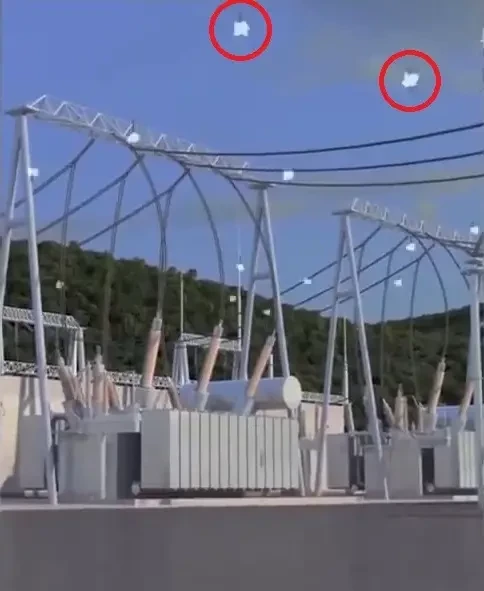 Цилиндрические суббоеприпасы упали на электрическую подстанцию, отпрыгнули от поверхности и подорвались в воздухе. При этом высвободились некие мелкие поражающие элементы. Они тут же вызвали короткое замыкание электрических систем подстанции, вывели её из строя и нанесли некий урон условному противнику.