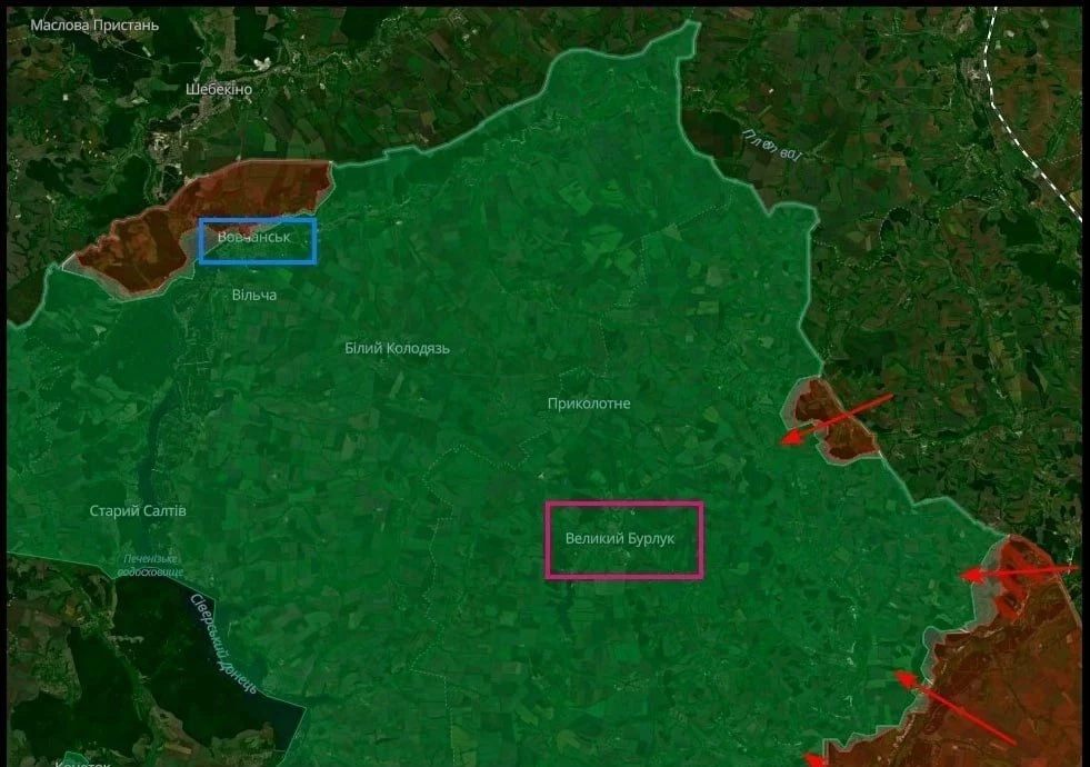 Вооруженные силы Украины просят командование готовить к обороне населенный пункт Великий Бурлук в Харьковской области после освобождения Мелового российскими бойцами.