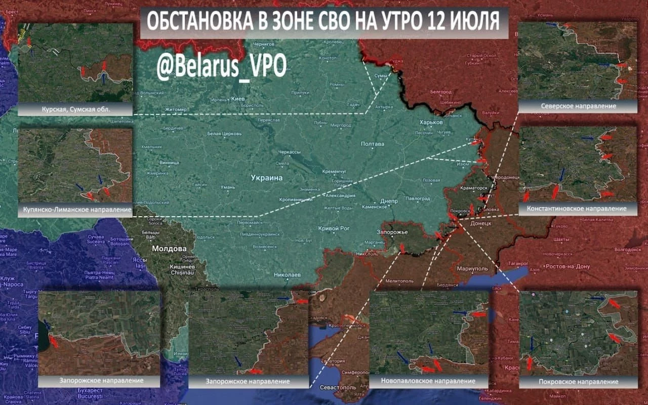 N4k предлагает ознакомиться с последними новостями из зоны проведения СВО, а также публикует свежую карту боевых действий, актуальную на 13.07.2025.