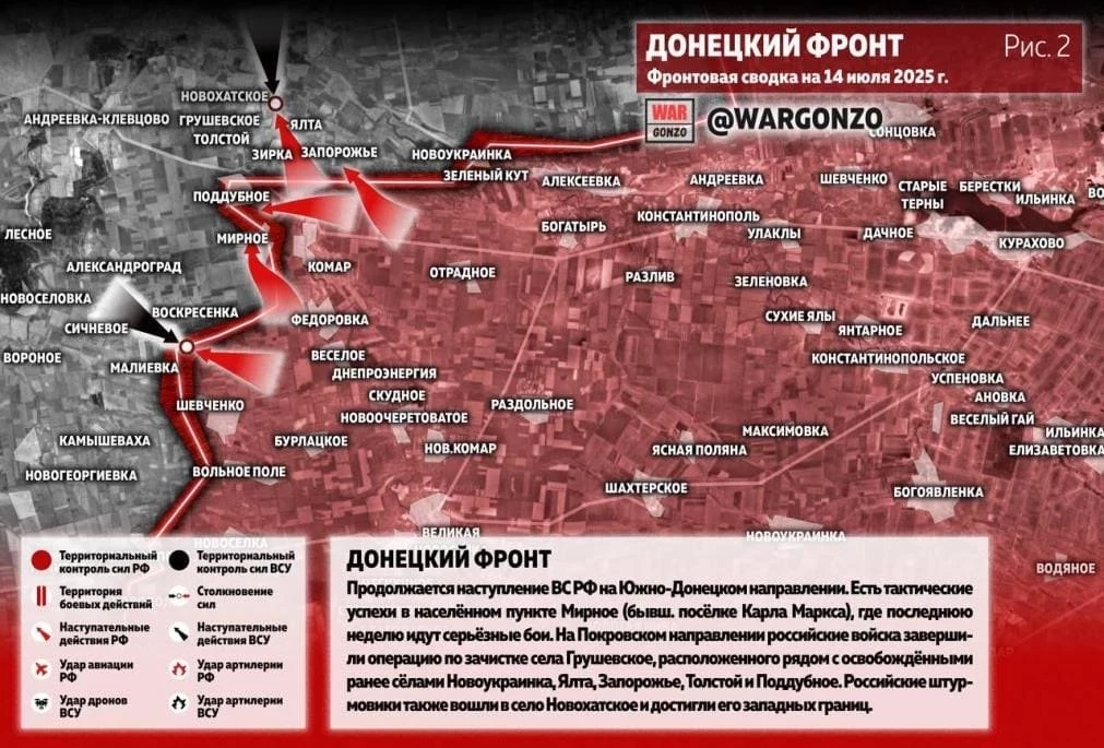 ВС России ведут ожесточённые бои в районе Новоукраинки и Новоторецкого на Покровском направлении и движутся вперёд: свежие данные на 14.07.2025
