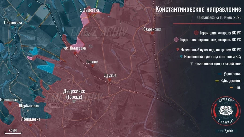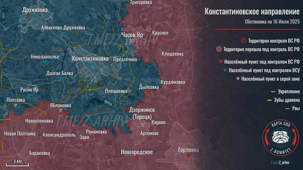 На Константиновском направлении продолжаются бои за Яблоновку и окрестности. Вооружённые силы Российской Федерации (ВС РФ) смогли расширить зону контроля у Петровки.