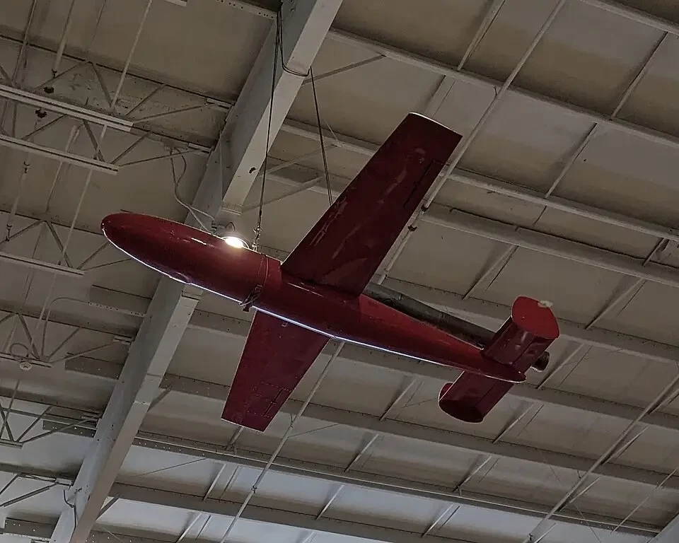 Воздушная мишень KD2G-2 под потолком павильона авиационной техники в Мемориальном парке боевых кораблей в Мобиле, штат Алабама