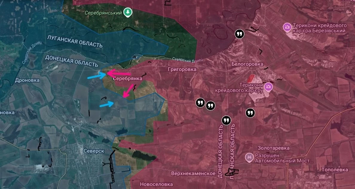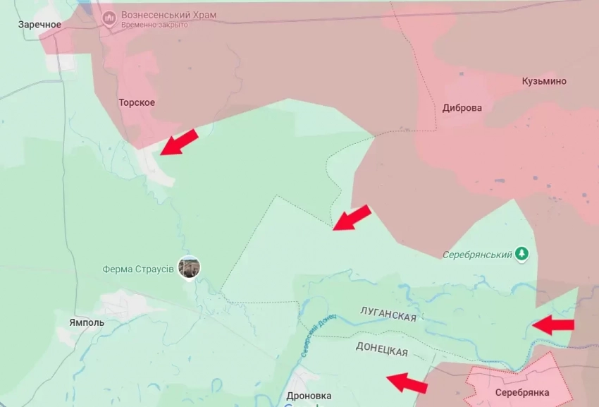 Одновременно с этим была освобождена Серебрянка, что на южном берегу Северского Донца, восстановлен контроль над значительной частью Торского. Также армия России вошла в пгт Заречное, форсировав реку Жеребец со стороны упомянутого Торского. Это продвижение создаёт предпосылки для охвата сил противника, остающихся в западной части Серебрянского леса, а также для выхода к окраинам Красного Лимана (северная часть Донецкой Народной Республики).