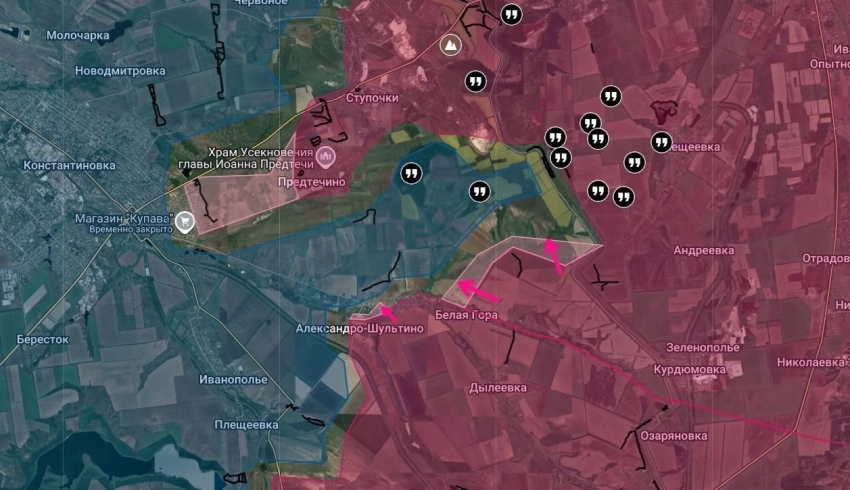 На Константиновском направлении ВС РФ продвигаются севернее Полтавки, стараясь охватить линию Владимировка - Шахово - Софиевка с востока. Восточнее Русин Яра есть продвижение в сторону дороги Долгая Балка - Софиевка. В Катериновке и Клебан-Быке интенсивные бои. Севернее Александро-Шультино ВС РФ продвинулись до 4 км в сторону Ступочек, из-за чего противник оставил крупный укрепрайон западнее Клещеевки. С мест сообщают о новом успехе наших сил: со стороны Предтечино ВС РФ зашли в Константиновку и закрепились на юго-восточной окраине. Со стороны Часов Яра продолжается зачистка Николаевки, бои идут также неподалёку от Веролюбовки.