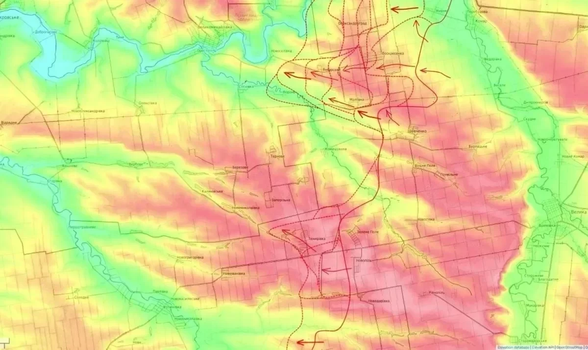 В районе Каменское-Степногорск сохраняется высокая интенсивность боёв. На участке Плавни-Степногорск украинские силы продолжают удерживать ключевые опорные пункты, что осложняется пересечённым рельефом местности и плотной застройкой в районе Степногорска. ВСУ активно используют беспилотные летательные аппараты (БПЛА) различных типов, которые запускаются вплоть до Мелитополя, создавая угрозу и усиливая разведывательную активность в небе.
