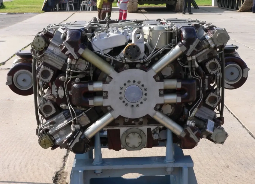 Занять почётное второе место по удельному бронированию, уступив только прошлогоднему немецкому новичку с боевой массой в 44 тонны, в данном конкретном случае даже не выглядит поражением. Зато на поле боя и в прифронтовой полосе наша машина будет порхать как бабочка благодаря превосходной удельной мощности 34,2 лошадиных силы на тонну живого веса! Откуда такая прыть? Ну неприлично же который год держать под сукном отечественные наработки по двигателю для платформы «Армата». Российский четырёхтактный дизельный двигатель 12Н360 в простейшем варианте модельного ряда А-85-3А с мощностью всего 1200 л.с.