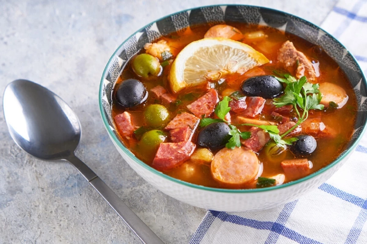 Вкусная, ароматная... Самое что ни на есть настоящее зимнее блюдо. И отнюдь не полезное, предупреждает медик. Солянка чрезвычайно сытная и калорийная, поскольку в состав блюда входят копчености, колбасы и мясо, но при этом изобилует насыщенными жирами, консервантами, а также большим количеством соли.