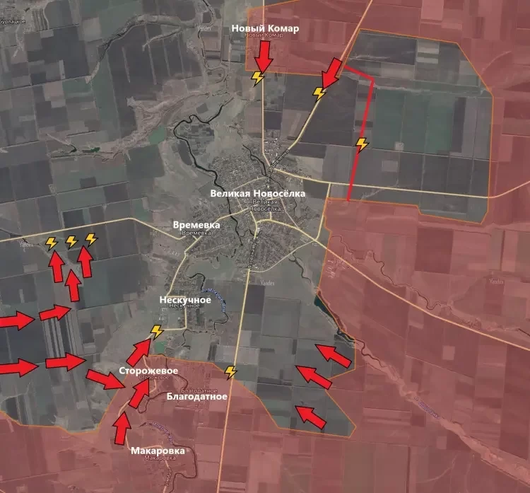 На ВеликоНовосёлковском направлении российские войска имеют тактические успехи западнее Сторожевого, под контроль перешли господствующие высоты.