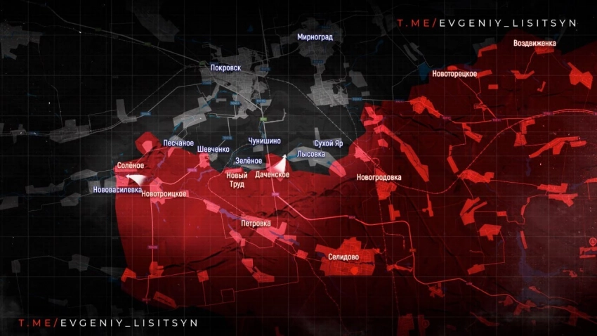 Российские войска продвинулись севернее Солёное на глубину до 800 м. ВС РФ давят в направлении Успеновки и Надеевки;