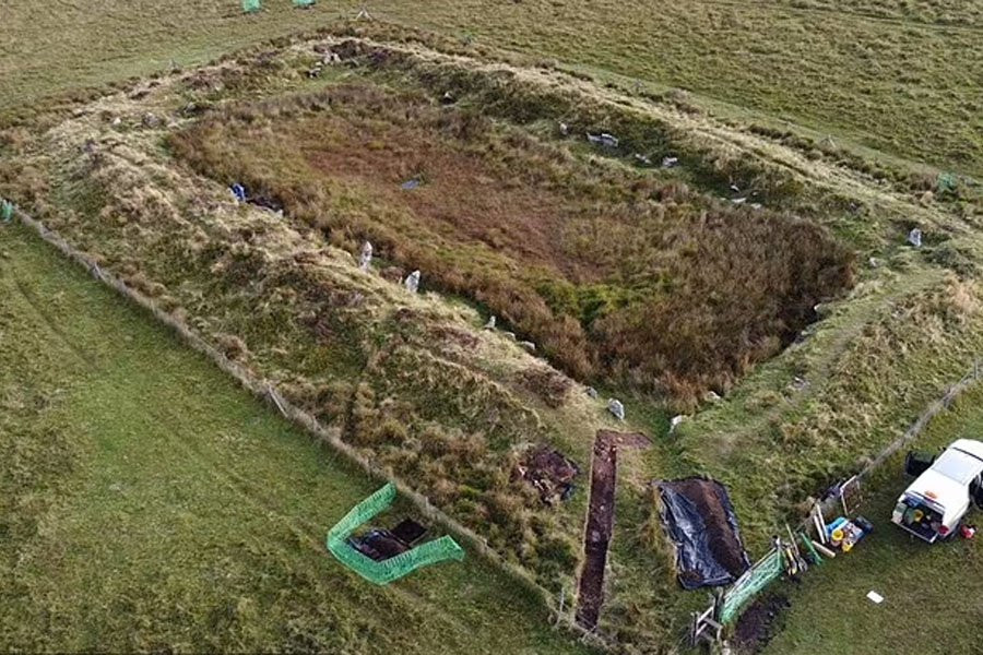 Археологи обнаружили, что прямоугольный памятник был построен не в раннем средневековье для загона скота, как записано в «Исторической Англии», а в эпоху среднего неолита, между 5000 и 5500 лет назад.