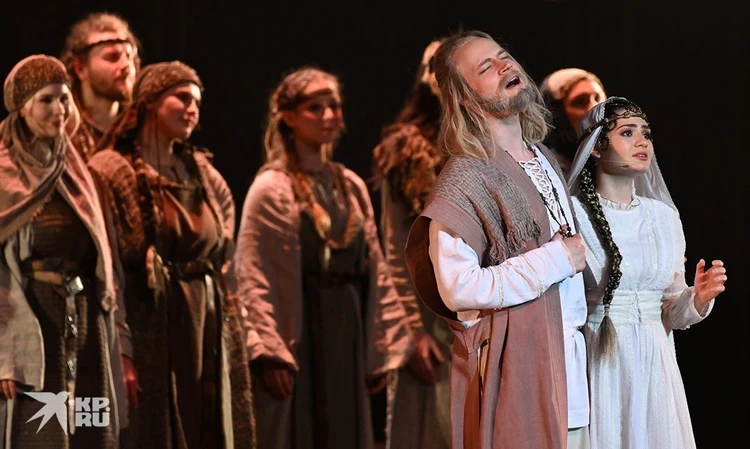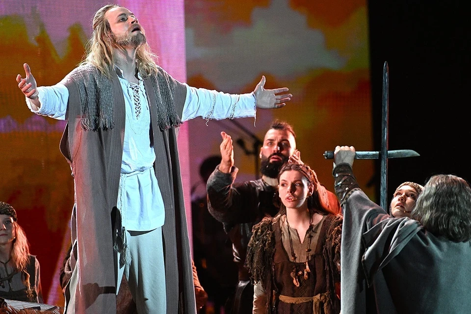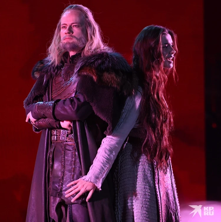 В этно-опере Матвиенко собрал мощный звездный состав. Князя Владимира играет SHAMAN (Ярослав Дронов), а лидера группы «Любэ» Николая Расторгуева мы увидели в неожиданной роли воеводы Федора - первого христианского мученика Древней Руси. Обволакивающий голос Расторгуева тут вообще отдельный вид магии. Вышел на сцену и сам Матвиенко в образе предводителя язычников Одина. Жутковатый шрам на лице, седая борода, но какой неожиданный рокерский вокал!