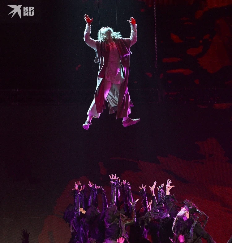 Ну и конечно, трюков в постановке немало. SHAMAN в нескольких эпизодах летает над сценой на специальных тросах.