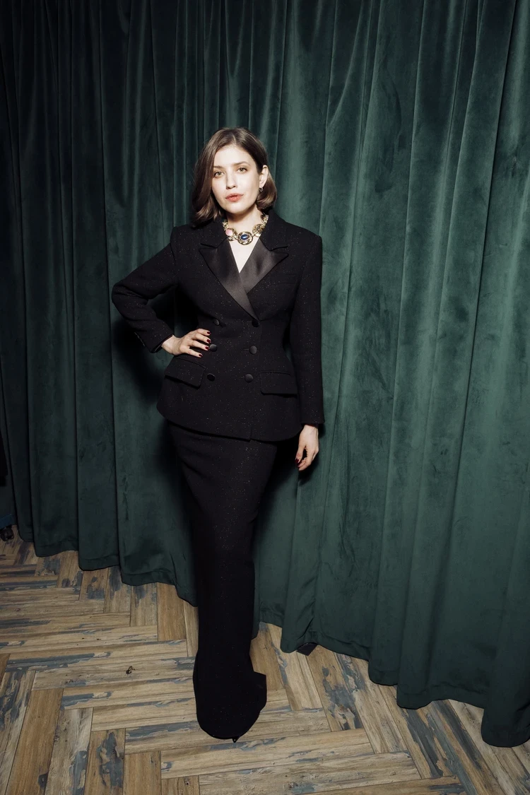 Анна Чиповская также появится в фильме. 37-летняя актриса, которая, по слухам, недавно рассталась с Дмитрием Ендальцевым, выбрала костюм с приталенным жакетом и юбкой макси.