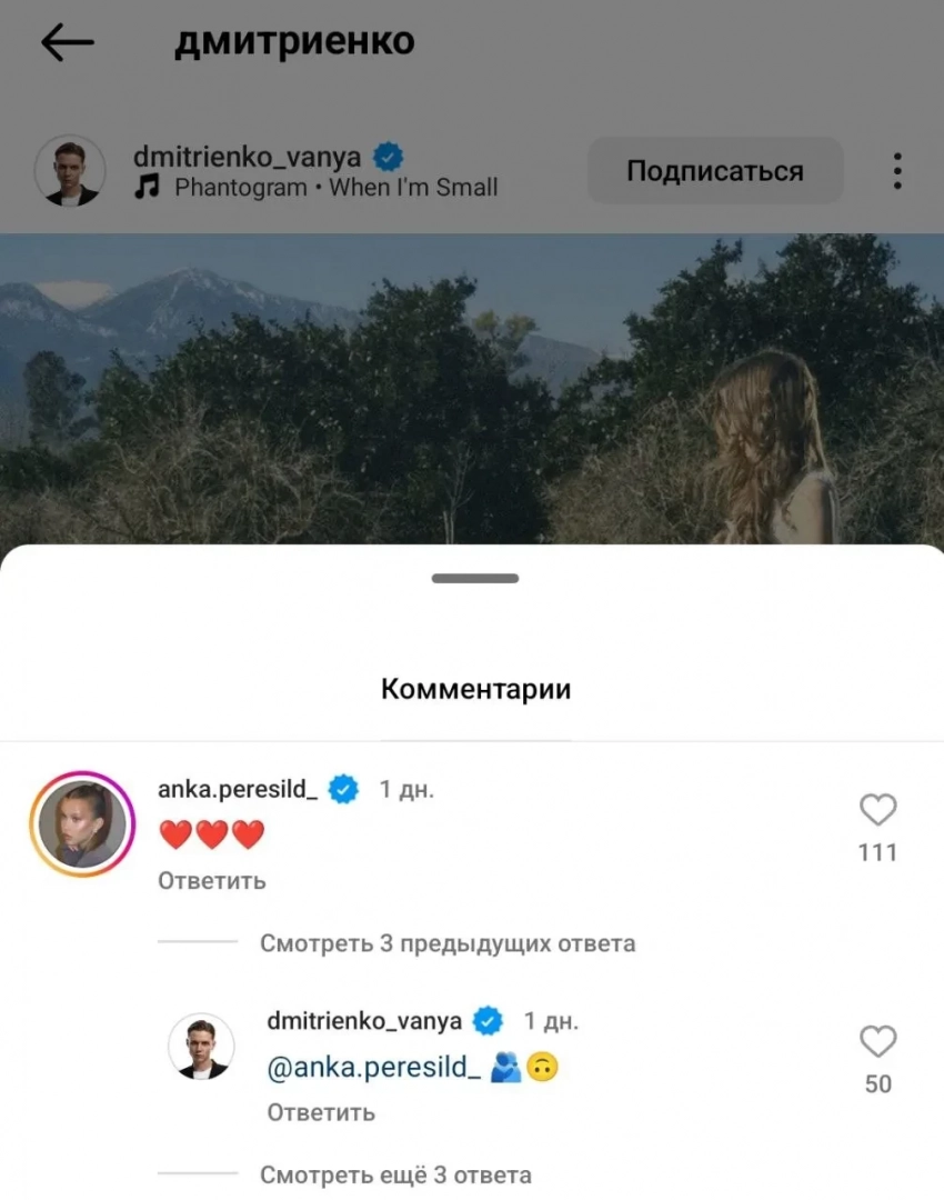 Скриншот/Фото: dmitrienko_vanya/Instagram*"Электричество между ребятами чувствуется", "Что между Ваней и Аней?", "Это вы типа встречаетесь?" — пишут поклонники.
