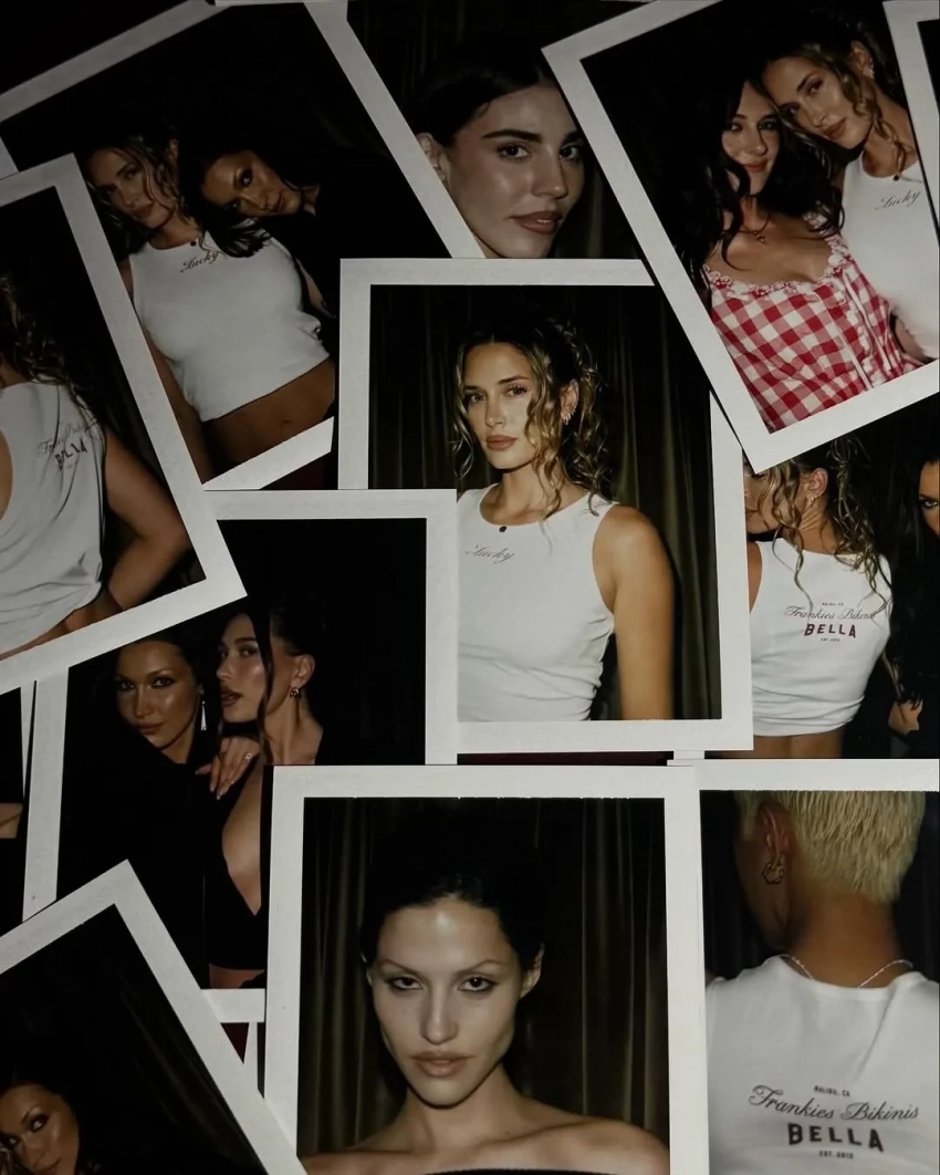 Белла Хадид посетила вечеринку в Голливуде в честь запуска её совместной коллекции с брендом купальников Frankies Bikinis. Поддержать 28-летнюю модель и основательницу марки Франческу Айелло в местный ресторан Stella пришли их подруги: Хейли Бибер, модель Габриетт, невеста экс-бойфренда Тейлор Свифт Мэтью Хили, а также Девон Ли Карлсон и другие.