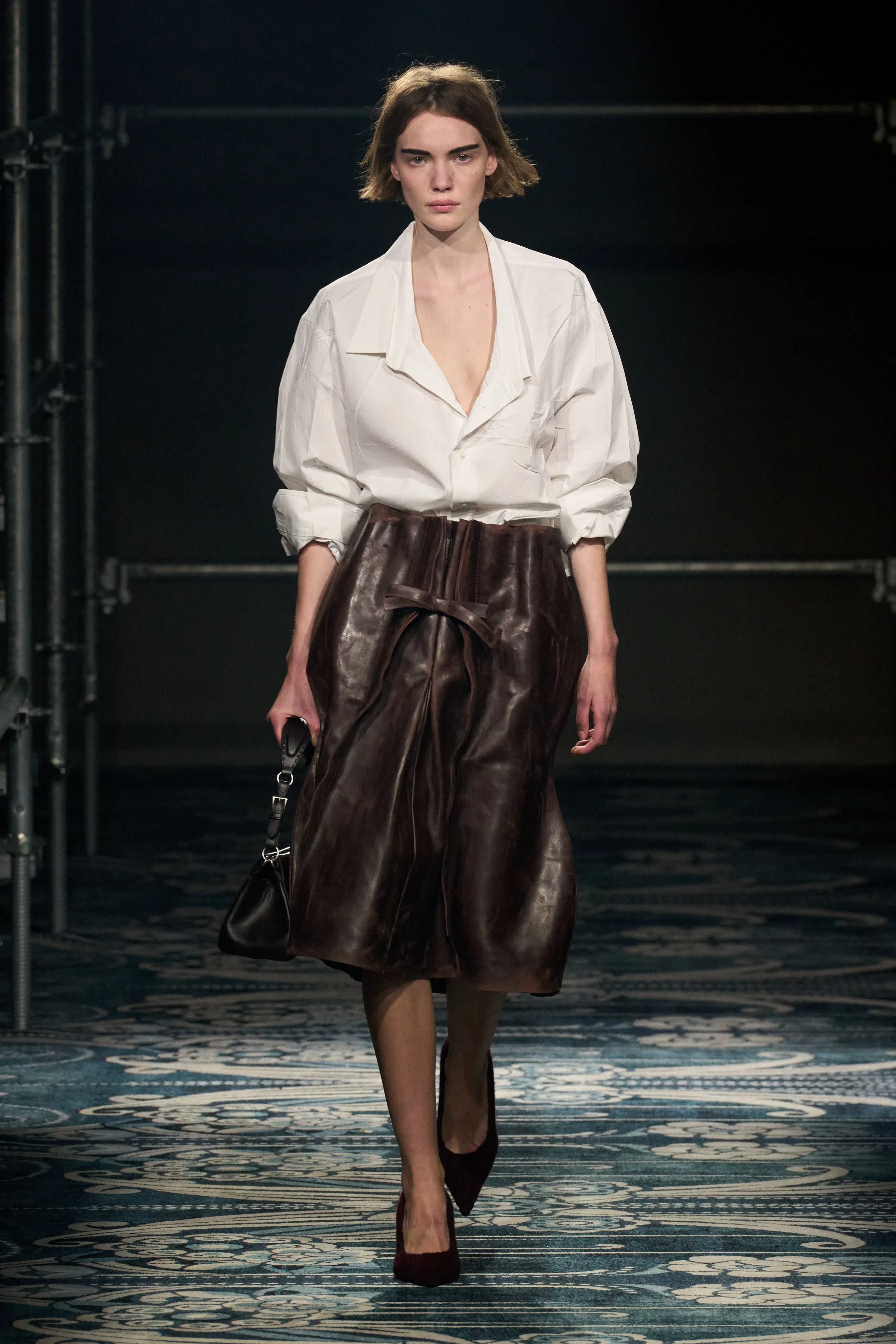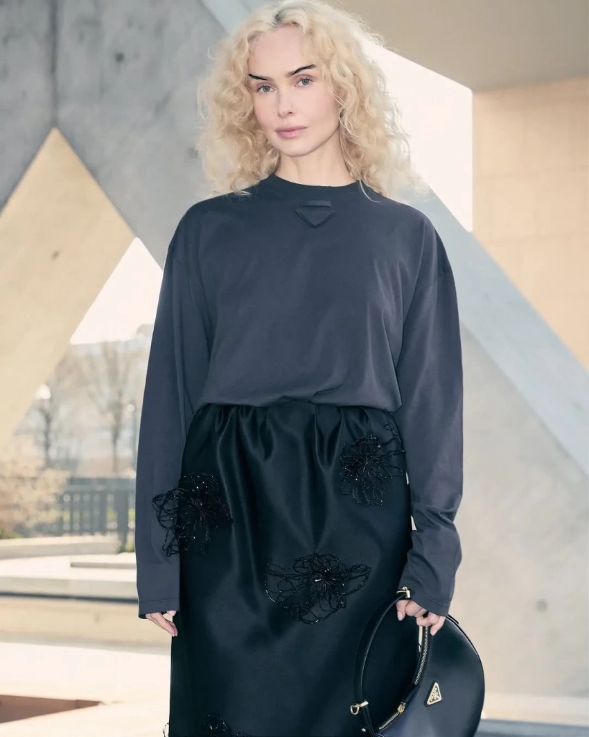 Алина Цыганова/Фото: oxana_bondarenko/Instagram*Креативные директора Prada Раф Симонс и Миучча Прада этой осенью предлагают носить шубы и глянцевые пальто с мехом, цветочный принт, трикотажные топы, заправлять рубашки в юбки из потёртой кожи и не укладывать волосы. На подиуме модели носили натуральный макияж с акцентом на брови. В следующем сезоне будет модно ходить с максимально яркими и тёмными бровями, особенно блондинкам (как на показе появилась Ольга Карпуть), или, наоборот, с высветленными.