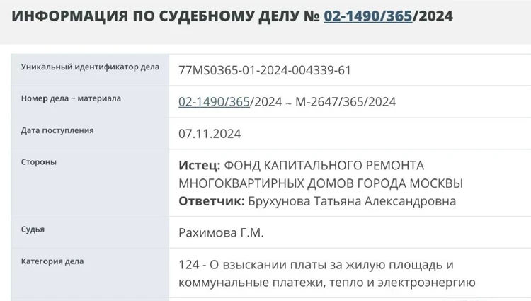 Ранее Брухунова оперативно прокомментировала новость о том, что у нее накопился внушительный долг из-за того, что она годами на оплачивала коммуналку. Речь идет про одну из квартир в Хамовниках. Долг, по некоторым данным составил более 300 тысяч рублей.